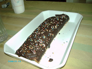 envolver en un trapo,para que quede la forma,y dejar enfriar.cuando este frios,rellenarlo a gusto,nata,trufa,crema...y despues cubrilo de lo que queramos,azucar glass,chocolate,yema...